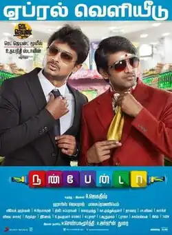 Nannbenda (transl. You are truly my friend) is a 2015 Indian Tamil-language romantic comedy film [1] written and directed by Jagadish and produced by Udhayanidhi Stalin with himself in the lead role, Nayanthara, Santhanam and Sherin Shringar. The music was composed by Harris Jayaraj with cinematography by Balasubramaniem and edited by Vivek Harshan. The movie was released on 2 April 2015.[1] The title of this film is derived from a dialogue uttered by Santhanam in the film Boss Engira Bhaskaran.