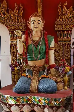One Buddhist legend presents Nang Kwak as a maiden named Nang Supawadee (or Subhavadi) of a trader family that converted to Buddhism.[5] According to this legend, in the small town of Michikasandhanakara in province of Sawadtii, there was a married family, Sujidtaprahma and his wife Sumanta, who had a daughter named Supawadee. They were merchants who sold wares on the markets and lived hand to mouth. One day, they were discussing their future and decided to expand their business to make more profit and to save for their old age.