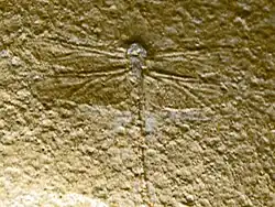 | Fossil specimen of Nannogomphus bavaricus from Germany, on display at Galerie de paléontologie et d'anatomie comparée in Paris | |
