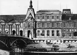 The expansion of the Louvre under Napoleon III in the 1850s, known at the time and until the 1980s as the Nouveau Louvre[1][2][3] or Louvre de Napoléon III,[4] was an iconic project of the Second French Empire and a centerpiece of its ambitious transformation of Paris.[5] Its design was initially produced by Louis Visconti and, after Visconti's death in late 1853, modified and executed by Hector-Martin Lefuel. It represented the completion of a centuries-long project, sometimes referred to as the grand dessein ("grand design"), to connect the old Louvre Palace around the Cour Carrée with the Tuileries Palace to the west. Following the Tuileries' arson at the end of the Paris Commune in 1871 and demolition a decade later, Napoleon III's nouveau Louvre became the eastern end of Paris's axe historique centered on the Champs-Élysées.