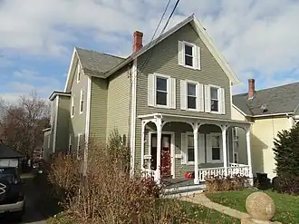 The Napoleon LaRochelle Two-Family House is a historic house at 30 Pine Street in Southbridge, Massachusetts. An excellent example of a vernacular Victorian duplex, it was probably built around 1890 for Napoleon LaRochelle, a polisher for the American Optical Company. He owned this and another house next door which was built in the same style. Its plan is a typical front-gable side entry layout, this time with a central cross gable. It has some bargeboard decoration on the front gable, and its front porch features a basket-weave railing.[2]