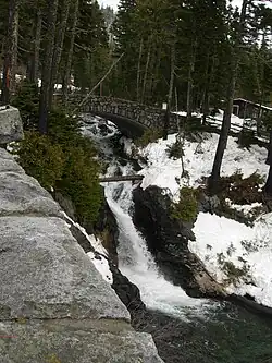 A 0.1-mile (0.16 km) trail leads to the waterfall viewpoint; the Wonderland Trail is accessed 0.2-mile (0.32 km) further on the path.[12] Skiers and snowshoe hikers can access slopes at Tatoosh Range, including Reflection Lakes Basin, near the Narada Falls Comfort Station by crossing over the bridge from the nearby parking lot.[13][14]