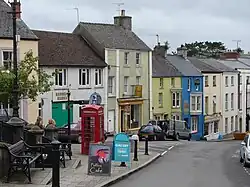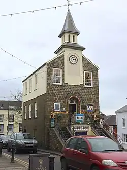 In the Iron Age, there was a defended enclosure to the south of the current town centre on Camp Hill.[5] Narberth was founded around a Welsh court, but later became a Norman stronghold on the Landsker Line. It became the headquarters of the hundred of Narberth. It was once a marcher borough. George Owen described it in 1603 as one of nine Pembrokeshire "boroughs in decay".[6] There is a First World War memorial in Market Square with further inscriptions added after the Second World War.[7]