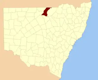 | Terewah | Brewarrina Shire | 29°54′15″S 147°25′27″E / 29.90417°S 147.42417°E / -29.90417; 147.42417 (Terewah) |
