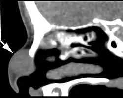 Patients come to clinical attention early in life (usually at birth or within the first few months), with a firm subcutaneous nodule at bridge of nose, or as a polypoid mass within the nasal cavity, or somewhere along the upper border of the nasal bow. If the patient presents with an intranasal mass, there may be obstruction, chronic rhinosinusitis, or nasal drainage. If there is a concurrent cerebrospinal fluid (CSF) leak, then an encephalocele is much more likely.[2]