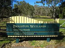 Brighton has a woodland wetland protected by the local government. This natural reserve is made up of three woods; namely Goodenia Woods, Pimelea Woods and Dianella Woods. The land is so called a wetland as it fills with water during heavy rain which flows into a small tidal creek, Copold Creek, that flows under one of the main roads of Brighton, Beaconsfield Terrace, and then leads to Bramble Bay between 15th and 16th Avenues.