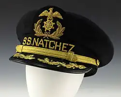 Black SS Natchez hat given to President Ford during his 1976 campaign trip down the Mississippi River.