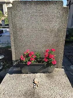 In the late 1960s Brooks became increasingly reclusive and paranoid; she sank into a depression and refused to see the doctors Barney sent. Bitter at Lahovary's presence during their last years, which she had hoped they would spend exclusively together, she finally broke off contact with Barney. Barney continued to write to her, but received no replies. Brooks died in December 1970, and Barney on February 2, 1972, aged 95, from heart failure.[156] She is buried at Passy Cemetery, Paris, Île-de-France, France.[157] She left some of her writing, including more than 40,000 letters, to the Bibliothèque littéraire Jacques-Doucet in Paris.[158]
