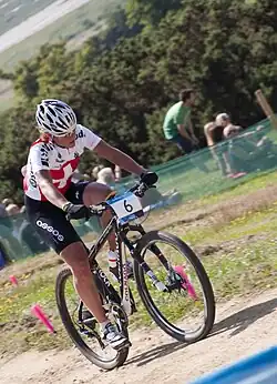 Nathalie Jessica Schneitter (born 19 June 1986 in Lommiswil) is a Swiss professional mountain biker.[2] Throughout her sporting career, she has won numerous Swiss national championship titles (both under the junior and elite category), and more importantly, a gold medal in the under-23 category at the 2008 European Mountain Bike Championships. Schneitter also handed an opportunity to represent her nation Switzerland at the 2008 Summer Olympics, and later rode professionally for more than five seasons on an exclusive sponsorship contract with the Colnago Team.[3]