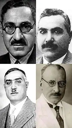 The main leaders of HIW (Clockwise from top left): Rashid Ali al-Gillani (top left), Yasin al-Hashimi (top right), Naji al-Suwaidi (bottom right) and Hikmat Sulayman (bottom left).