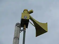 The National Emergency Alarm Repeater (NEAR) was a civilian emergency warning device in the United States. It was a 2–3" (5–7.5 cm) square box designed to plug into a standard power outlet to receive a special signal sent over the electric power transmission lines. Research and testing for the NEAR program was developed in 1956 during the Cold War to supplement the existing siren warning systems and radio broadcasts in the event of a nuclear attack. The advent of the radio Emergency Broadcast System rendered NEAR obsolete, although a severe disadvantage inherent in the Emergency Broadcast System was that it required a television or radio to be turned on for a household to receive the emergency alarm, whereas NEAR did not. Despite this advantage, upon the introduction of the Emergency Broadcast System, stockpiled NEAR repeaters were destroyed by their respective manufacturers.[1]
