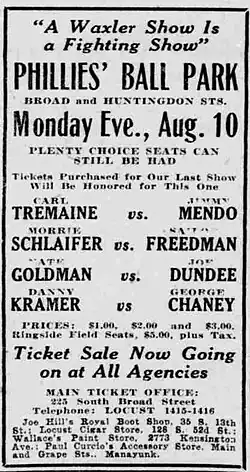 Boxing matches were held at the ballpark and attracted large crowds. 35,000 spectators saw George Godfrey lose on a foul to Primo Carnera on June 23, 1930.[53]