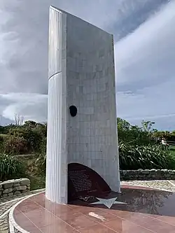 | Abel Tasman Monument | | Tarakohe 40°49′16″S 172°54′09″E / 40.8212°S 172.9026°E | The Abel Tasman Monument is a memorial to the first recorded contact between Europeans—led by the Dutch explorer Abel Tasman—and Māori in New Zealand's Golden Bay on 18 and 19 December 1642. It was unveiled on the tercentenary of the encounter by the prime minister, several government ministers, and a Dutch delegation. The monument was designed by the architect Ernst Plischke as an abstracted sail, and consists of a large concrete monolith painted white. Located on a bluff at Tarakohe just east of Pōhara, the land for the monument was gifted by the Golden Bay Cement Company. The dignitaries opened the Abel Tasman National Park the following day and the area holding the monument is part of the national park. As was typical for the 1940s, the original inscription focused on the European experience only and overlooked the Māori perspective, demonstrating Western-centric systemic bias. |