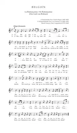 ![]() Cover of a score of the Brabançonne, dated around 1910 | |