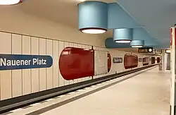 Nauener Platz is a Berlin U-Bahn station located on the U9 line. The square that gives it its name is named after the city of Nauen.