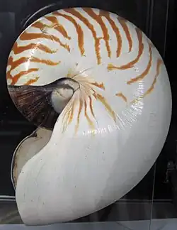 Nautilus is a marine cephalopod genus in the mollusk family Nautilidae. Species in this genus differ significantly, morphologically, from the two nautilus species in the adjacent sister-taxon Allonautilus.[2] The oldest fossils of the genus are known from the Late Eocene Hoko River Formation, in Washington State and from Late-Eocene to Early Oligocene sediments in Kazakhstan.[1] The oldest fossils of the modern species Nautilus pompilius are from Early Pleistocene sediments off the coast of Luzon in the Philippines.[1]