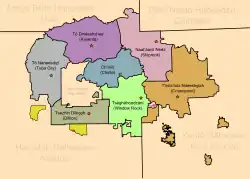 The Navajo Nation Police (formerly known as the Navajo Tribal Police) is the law enforcement agency on the Navajo Nation in the Southwestern United States. It is under the Navajo Division of Public Safety. It is headed by a Chief of Police, six Police Captains and eight Police Lieutenants. It includes: Internal Affairs, Patrol, K-9 Unit, Police diving, Tactical Operations Team, Traffic Unit, Fiscal management, Recruitment, and Training Divisions. The Navajo Nation Police are responsible for seven districts: Chinle, Crownpoint, Dilkon, Kayenta, Shiprock, Tuba City, and Window Rock. There are also several substations in each district ranging from one-man substations or up to five officers each. Currently, there are 210 sworn police officers (134 patrol), 28 criminal investigators, and 279 civilians acting as support staff for the department. There are approximately 1.9 police officers per 1,000 people and one officer is responsible for patrolling 70 square miles (180 km2) of reservation land. The Navajo Nation Police are funded by federal contracts and grants and general Navajo Nation funds. This police department used to be one of only two large Native American police Departments with more than 100 sworn officers in the United States (the other is the Oglala Lakota Nation's police department). Now there are several Nations and Tribes that have over 100. [1]