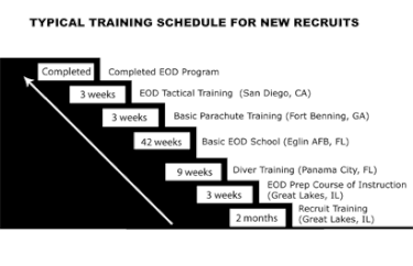 - EOD Tactical Training (21 days, EOD Training and Evaluation Unit ONE, San Diego)[7] (See enlisted training)