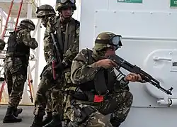 In addition, the RASM took over the combat divers of the former special intervention group (GIS) shortly after the latter was disbanded in 2015.[2]
