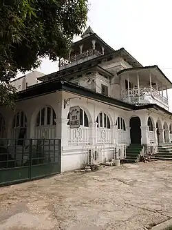 King Bell's relations with the first Governor were poor. This was in part because of complaints to the central authorities by his nephew Alfred Bell, who was being educated in Germany.[10] Also, von Soden was committed to eliminating Bell dominance of the trade in the Mungo valley to the northwest of Douala, assisting the firm of Jantzen and Thormählen to expand into this region to start plantations and establish a trading station.[16] King Bell's English-educated son, Manga, was even exiled to Togo for two years, where he became friendly with the German commissioner Eugen von Zimmerer.[10]