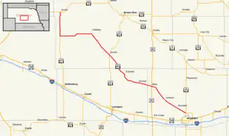 - ^ a b c "Nebraska Highway Reference Log Book" (PDF). Nebraska Department of Roads. 2015. pp. 134–135. Archived from the original (PDF) on February 15, 2020. Retrieved January 7, 2017.