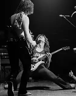 Giraldo began his professional music career in 1978 as a member of the Rick Derringer band after competing alongside 200 fellow guitarists for the position.[5] Giraldo provided his guitar, as well as piano skills for Derringer's 1979 recording of Guitars and Women.[6] In the spring of 1979, Mike Chapman introduced Giraldo to Pat Benatar[6] who had recently signed a recording contract with Chrysalis Records.[2] Chapman felt Giraldo's affinity for arranging and musical direction would facilitate the creation of a sound both identifiable and powerful.[2] Over the years Giraldo has produced some of Benatar's biggest hits including "Love Is a Battlefield" and "We Belong".[6] Giraldo has performed on every Benatar album and produced all but two.[7]