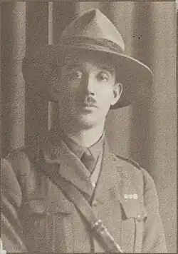 In 1915, Macky volunteered to join the New Zealand Expeditionary Force (NZEF) which had been raised for service in the First World War. He was posted to the 1st Battalion of the New Zealand Rifle Brigade as a second lieutenant in October that year. He served in the Middle East during the brief Senussi Campaign[1] before the brigade, as part of the newly formed New Zealand Division, embarked for the Western Front in April 1916.[2] The first major engagement of the division's service in Europe was the Battle of Flers–Courcelette in September 1916.[3] On 15 September, during the battle, Macky, newly promoted to a full lieutenant, won a Military Cross for his leadership of two platoons that dealt with a German counterattack.[1]