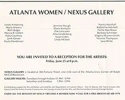 - Atlanta Women, Nexus Gallery, Atlanta, GA, June 25 - August 8, 1982.