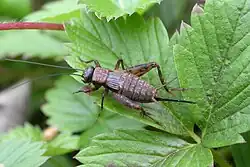 Nemobius sylvestris, the wood cricket, is a flightless species of cricket in the family Trigonidiidae. It is native to Western Europe and North Africa but uncommon in Britain.