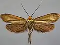 Its wingspan is 15–20 mm. The moth flies from late June to August depending on the location.