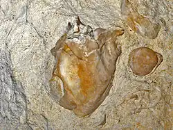 | Fossil shell of Neopycnodonte navicularis with a small Terebratulid valve from Pliocene of Italy | |