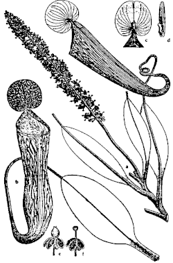 There has been confusion surrounding N. stenophylla and N. fallax[note a] ever since the latter was first described. Nepenthes fallax matches N. stenophylla in most respects, except for the shape of the lid; the type specimen of N. fallax has an orbiculate lid, whereas that of N. stenophylla is narrow. However, the original description of N. stenophylla was based on a plant raised from seed in a greenhouse in England, and the narrow shape of the lid could be an aberrant characteristic resulting from artificial growing conditions.[6]