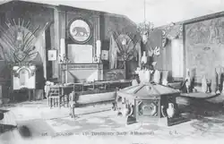 René du Coudray de La Blanchère had the large mosaic of Neptune[5] assigned to the brand-new Musée Alaoui, the future Musée du Bardo, which was carefully transported in several crates and then loaded onto a French cruiser, the D'Estrées.[30] The dismantling, which began on March 7, 1887, preceded the loading onto the ship, which was completed on June 28.[31] The surface area of the mosaic-covered room and the journey involved made removal and transport difficult.[32] Each medallion was removed in turn, and slabs were made up.[33] The crates use a Decauville railway line to reach the port and La Goulette. The set reaches Le Bardo by train.[34] The mosaic is extensively restored prior to its exhibition,[35] as is another work, the panther.[36]