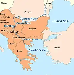 | Progression | Ibar→ Danube→ Black Sea / Lepenac→ Vardar→ Aegean Sea |