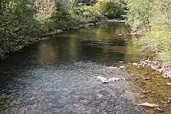 A creek known as Nescopeck Creek is in the vicinity of Nescopeck Mountain.[7] Additionally, Black Creek, a major tributary of Nescopeck Creek, empties into the larger creek at the base of the ridge.[8] The ridge is north of the creek for a portion of its length. There is a valley known as the Nescopeck Valley which is between Nescopeck Mountain and Buck Mountain. Nescopeck Creek flows through this valley. The valley is 20 miles (32 km) long and 5 miles (8.0 km) wide.[8] Some streams on the ridge are part of the Lehigh River watershed.[17]
