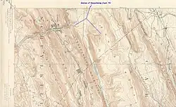 Twin sources of Nesquehoning Creek as Nesquehoning Mountain and Broad Mountain merge in the saddle above Tamaqua, Pennsylvania and below the drainage divide from the Little Schuylkill River below and west. (Image is rotated so east is at bottom) | |