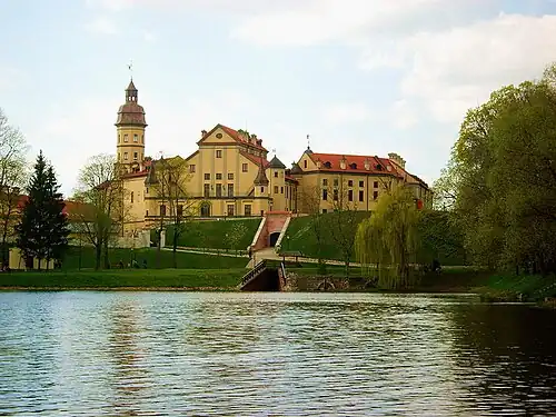 - ^ Belarusian: Нясвіжскі замак, romanized: Niasvižski zamak; Russian: Несвижский замок, romanized: Nesvizhskiy zamok; Lithuanian: Nesvyžiaus pilis; Polish: zamek w Nieświeżu.