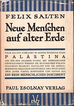 Neue Menschen auf alter Erde: Eine Palästinafahrt (German: “New people on ancient soil: A tour to Palestine”) is a 1925 travel book by Felix Salten, depicting his 1924 visit to Mandatory Palestine. Neue Menschen auf alter Erde was first published as a series of feuilletons in a Vienna newspaper. Salten considered it one of his two books worthy of special mention.[1]