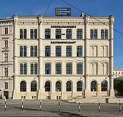 The Handelsakademie Wien was founded in 1857, the second Handelsakademie in the Austrian Empire after Prague, and instruction started in the following year with five teachers and 59 pupils. The first president of the Handelsakademie was Friedrich Schey von Koromla.[3] The building of the Handelsakademie in the Akademiestraße near Karlsplatz was designed by the architect Ferdinand Fellner dem Älteren and completed in 1862.