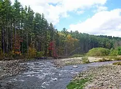 The Neversink River (also called Neversink Creek in its upper course) is a 55-mile-long (89 km)[1] tributary of the Delaware River in southeastern New York in the United States. The name of the river comes from the corruption of an Algonquian language phrase meaning "mad river."