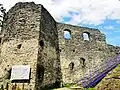 A recently reconstructed tower. The roof of this donjon (keep) collapsed in March 2019[2] -