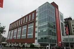 In 1999, a major modernization project took place, adding 200 beds to the hospital.[17] A second major expansion of the facility was approved by Queens Community Board 7 in September 2006, leading to the construction of the current lobby building and a new West Wing building.[6][27] Groundbreaking on the project took place on February 9, 2007.[28] The West Wing opened in 2010.[6][29] A new parking garage, either on the current parking lot or on property taken from nearby Kissena Corridor Park, was proposed, but has yet to be constructed.[6][27][28] In 2012, the hospital installed a half-acre of green roof with funding from the New York City Department of Environmental Protection.[30]