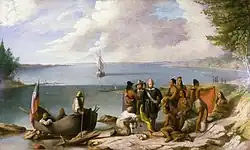 William Allen Wall's 1842 depiction of Wampanoag people meeting Bartholomew Gosnold and his crew upon their arrival in New Bedford in 1602[8]