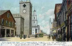 Old Colony Railroad Station in New Bedford, as it looked c. 1907–1915. As early as 1840, New Bedford was integrated into the northeastern economy by rail.[21]