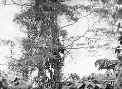 Ill-equipped and wearing an assortment of clothing and uniforms, their webbing was mostly of First World War vintage leather. Lacking helmets and entrenching tools, they carried packs and haversacks weighing in excess of 40 to 50 pounds (18 to 23 kg). With an average age of 35 years, most of the men had lived New Guinea for a considerable period of time. Highly individualistic and with limited military training, they lacked the coherence of a formed unit, while many brought their native labour lines with them to share the burden.[42] The men readied themselves to fight a guerrilla war from the hinterland against the expected invasion, as well as preparing to destroy key infrastructure to deny it to the Japanese. Meanwhile, another company formed at Lae under Captain Hugh Lyon for the same purpose. Both companies were ordered to commence a demolition campaign in the event of a Japanese landing, although Wau airfield was to be left intact for the time being.[43] NGVR personnel also helped rescue 217 survivors of Lark Force from Rabaul in February and March 1942.[44]