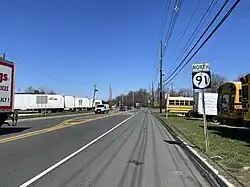 Route 91 is a 2.26-mile-long (3.64 km) spur state highway in Middlesex County, New Jersey. The route runs as a spur of U.S. Route 1 (US 1) along Jersey Avenue in North Brunswick Township to Van Dyke Avenue in the city of New Brunswick. At Van Dyke Avenue, Route 91 ends as a state route, and Jersey Avenue continues as County Route 693 (CR 693) to Route 27 in the center of New Brunswick. The mainline of Route 91 officially ends at the ramps to and from US 1 southbound (bound for Trenton) and Orchard Street; the 0.37-mile-long (0.60 km) connector constructed from US 1 northbound is designated as Route 91 Connector.[3]
