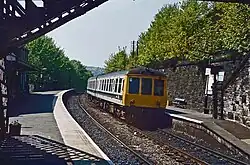 New Mills Central railway station serves the town of New Mills in Derbyshire, England. It is on the Hope Valley Line between Manchester Piccadilly and Sheffield, 12+3⁄4 miles (20.5 km) east of the former. The town is also served by New Mills Newtown station, which is on the Buxton to Stockport and Manchester line.