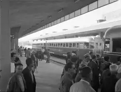 Passengers on the platform of the railway station, 1949–1950 Photographer: Ioannis Lambros, Archive: Benaki Museum