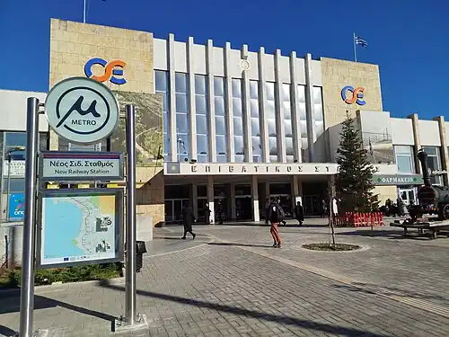 The Thessaloniki Suburban Railway runs suburban commuter trains in and around Thessaly and Western Macedonia. Although largely unchanged since the 1960s, it remains the largest and busiest railway station built in Greece and one of the country's most important works of modern architecture.[13] The station is also the terminus for Line 1 of the Thessaloniki Metro, which is accessible via New Railway Station metro station.