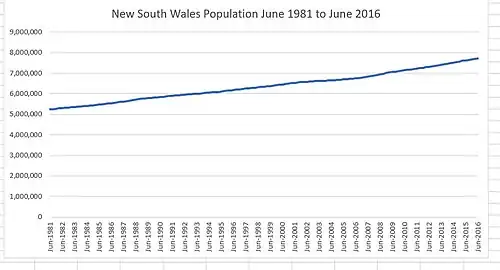 - ^ a b "Australian National Accounts: state accounts, Table 2. Expenditure, Income and Industry Components of Gross State Product, New South Wales, Chain volume measures and current prices". Australian Bureau of Statistics. 19 November 2021. Archived from the original on 17 June 2016. Retrieved 8 September 2022.